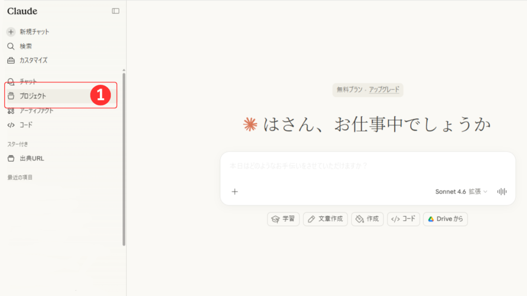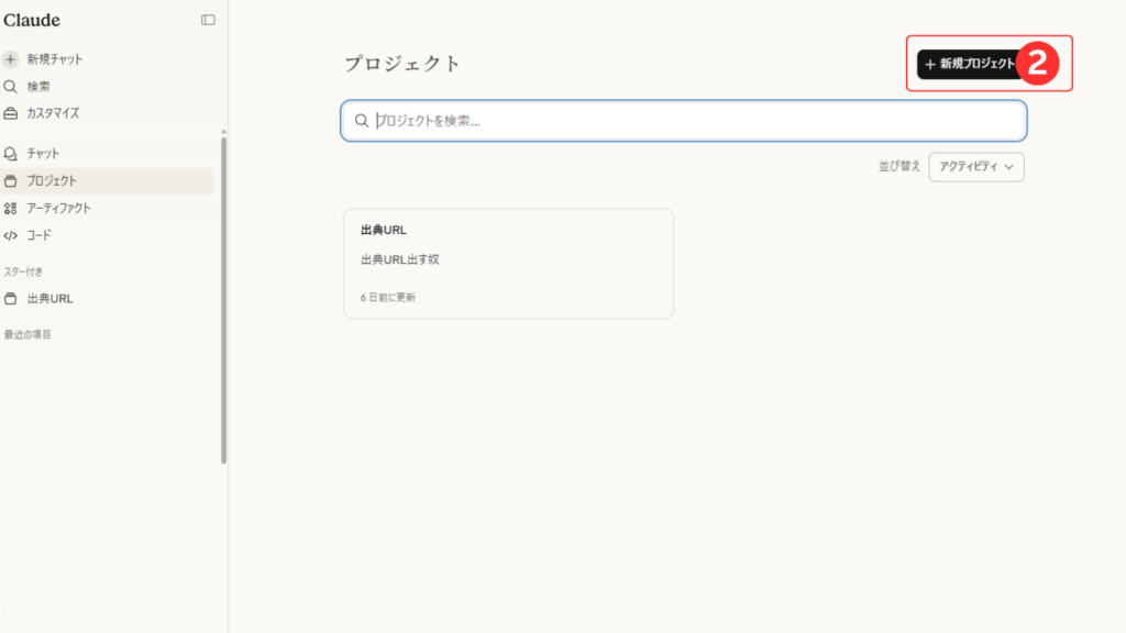 まずは、ログインして左側のメニューバーから【プロジェクト】を選択