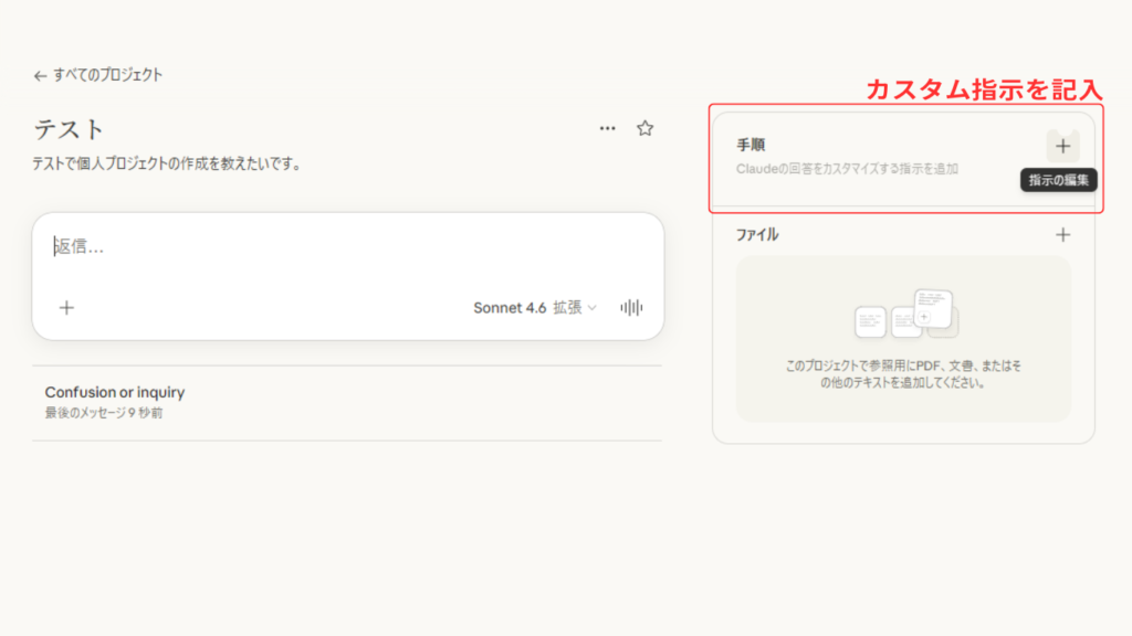 手順のところの【指示の編集】からカスタム指示を入れていきましょう。