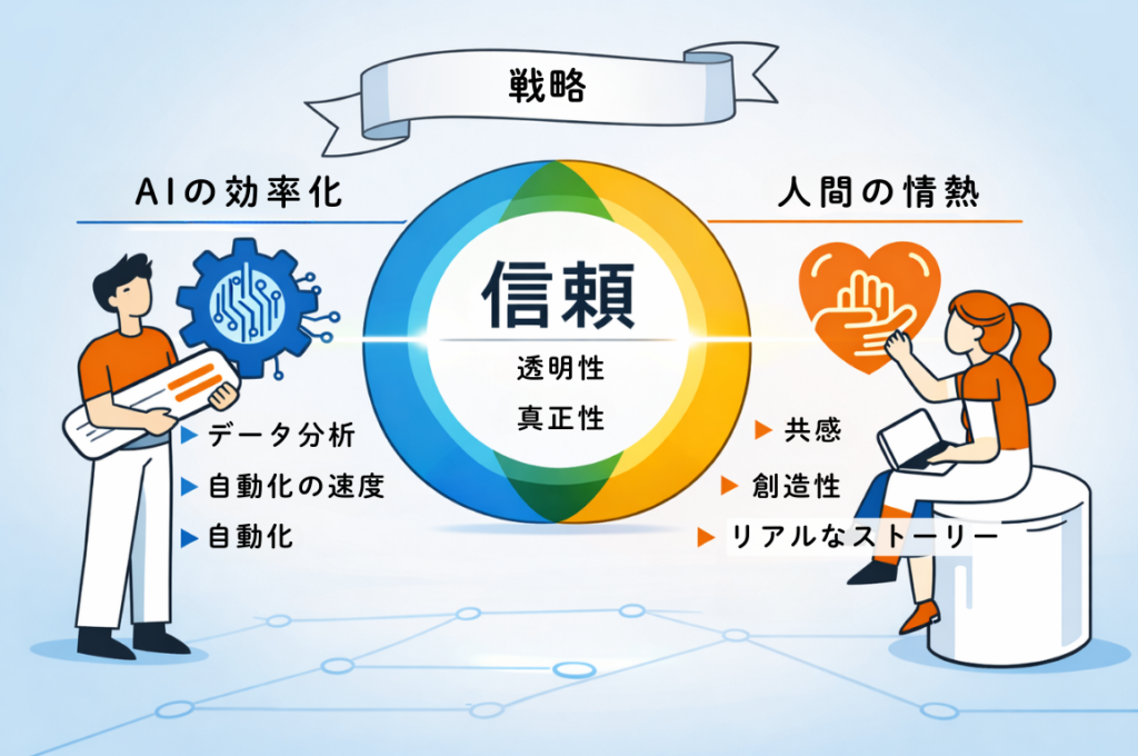 - 透明性の確保:広告や重要な発信では、AI活用をオープンにすることが信頼の差別化になる。