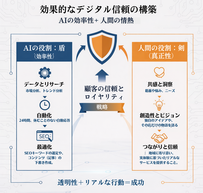 AIは調べ物や構成を整えるのは得意ですが、お店を切り盛りしているあなたにしか分からない「現場の空気感」は書けません。