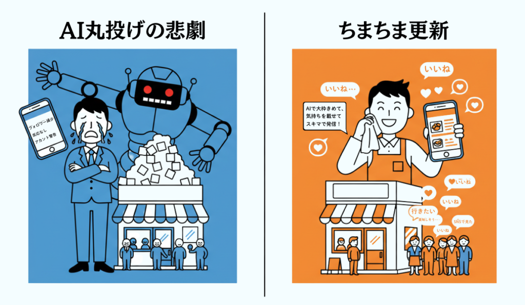 - 目的の再定義:AIで浮いた時間は、SNS作業ではなく「目の前のお客様への接客」に充てる。