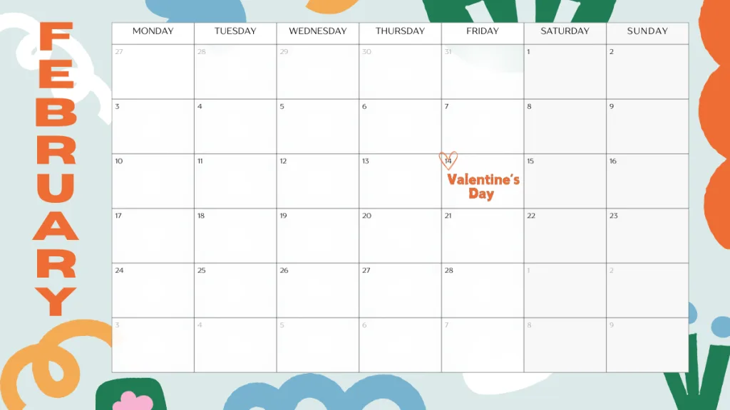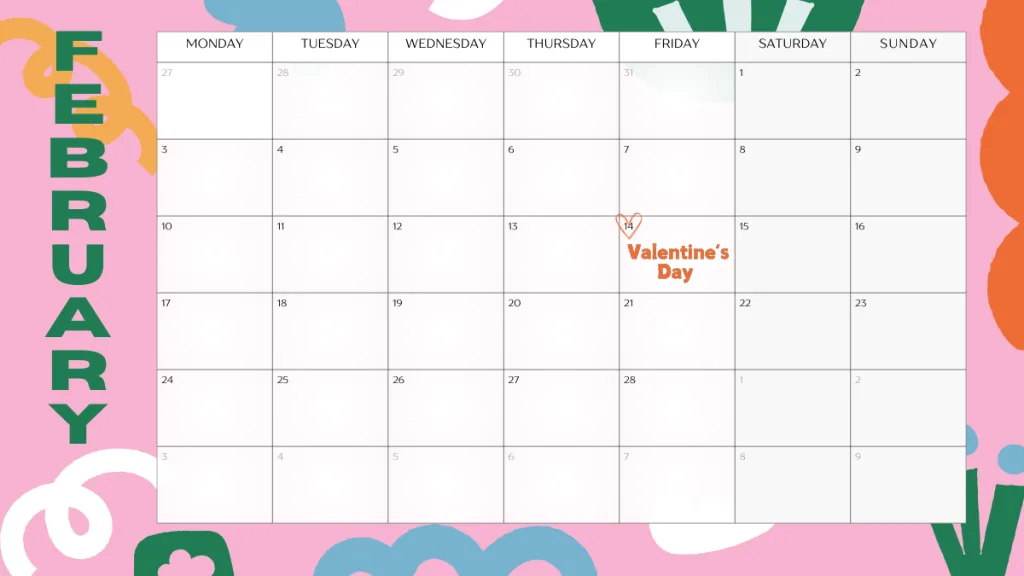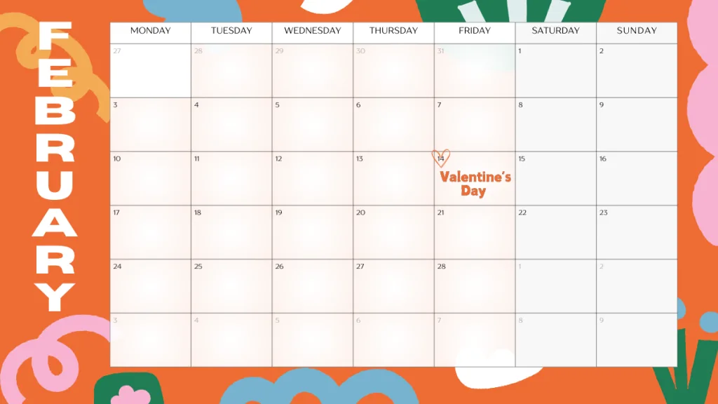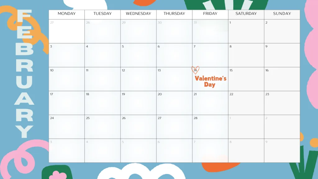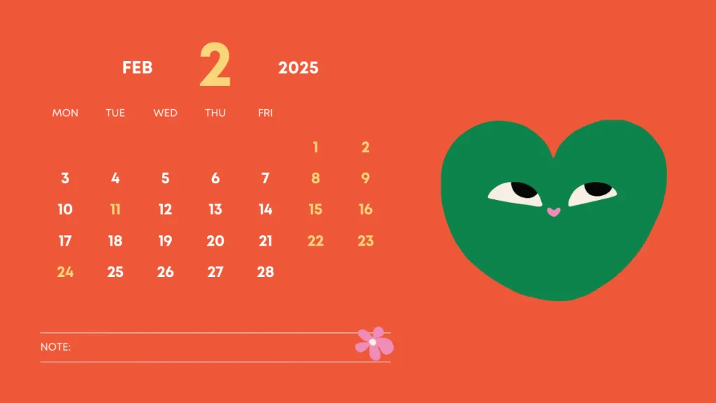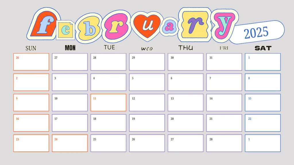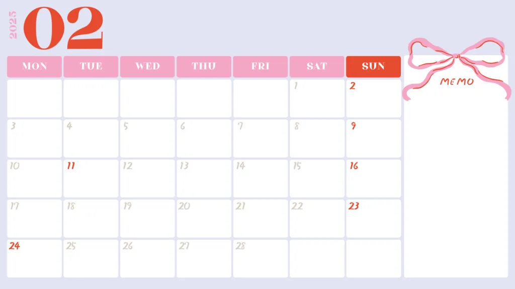 デザイン例として、2月のカレンダーを一緒に記載しているので、そちらもみていただけると嬉しいです☻
