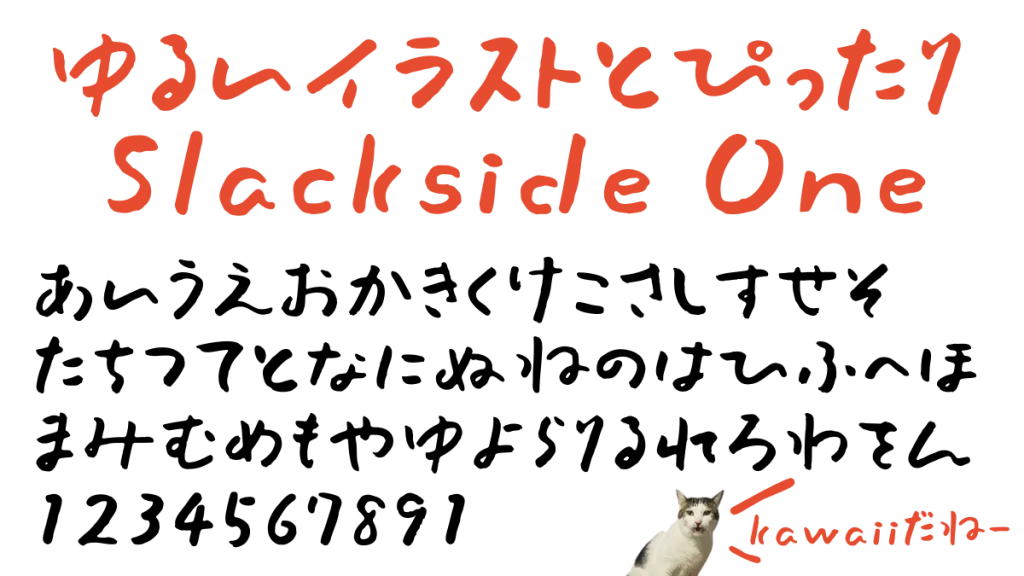 ゆるいイラストとぴったりのこのフォント、【Slackside One】です!