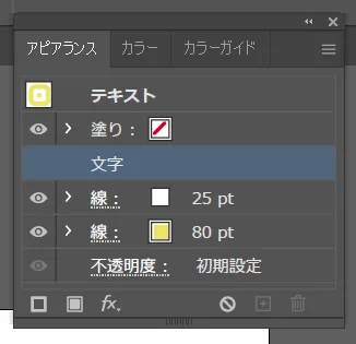 - 線パネルをクリック(アピアランスの線って文字をクリックでも)