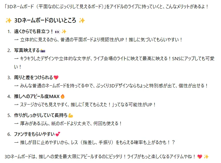 そんなことはさておき、今回のコラムは推しがいる方はもちろん、いないけど学校行事などで目立ちたい!という方に向けて、3Dネームボードの作り方をお伝えします(˘ᵕ˘ )♡