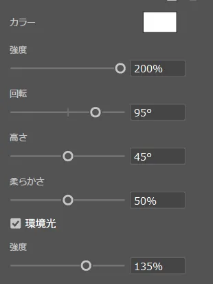 「強度」<「環境光」にして「柔らかさ」を強めにすると、ふんわり感が出ます♪