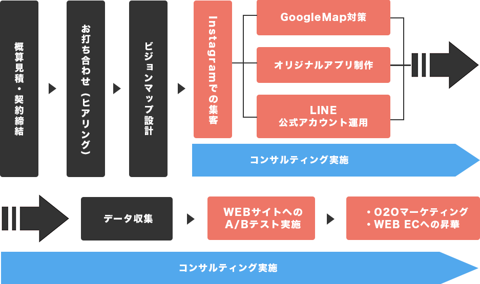 事業や店舗に合わせた最適な集客戦略を設計・実行するコンサルティングサービスです。